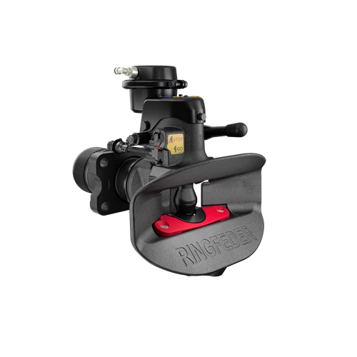 A convenient quick operation air opened coupling for hinged or rigid drawbars. It is the ideal solution for underslung positioning. The self-closing and automatically secured coupling provide high safety and long-term reliable performance. The pneumatic opening makes it ergonomic, time-saving and improved productivity for the driver.